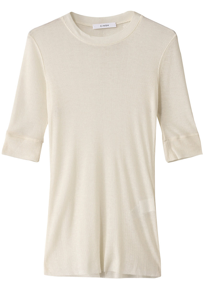 インナーにカップ付きのキャミソールを合わせたり、タイトフィットなTシャツとのレイヤードも好相性。テンセルならではの自然な光沢ととろみのある質感にカシミヤとシルクをブレンドした、まさに大人のための上質な一枚。繊細で薄手ながら、ふっくらとした肌当たりのテレコ素材は、一度袖を通すと手放せなくなる着心地です。