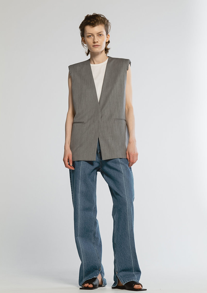 シアーなカットソーと合わせて提案したいのが、ジレ+ジャケットのセットアップ。きちんと感が求められる日はセットアップで、オフの日はパンツをデニムに替えてカジュアルダウン。オン・オフ問わず活躍してくれる、着回し力の高い優秀アイテムです。