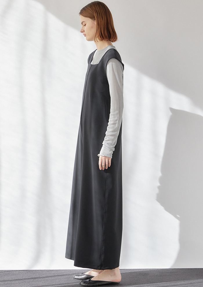 昨年も好評を博した「フローレント」のコンビネゾンに、今年は素材違いが仲間入り。先ほどご紹介したようなシアーなカットソーをインナーに重ねても、夏にはさらりと一枚でも着映える優秀アイテム。スクエアネックがデコルテを美しく引き立て、ワイドシルエットのパンツ部分が自然にスタイルアップを演出してくれます。