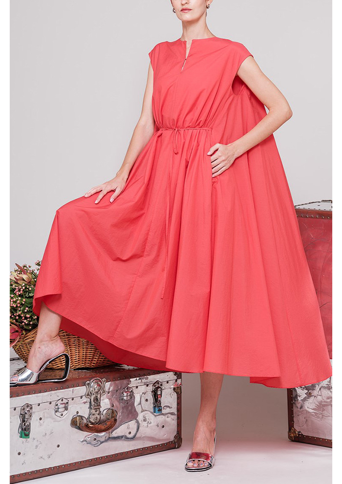 本物志向の大人に支持される「ドメル」から、今季もおしゃれと実用性を両立するアイテムが豊富にラインナップ。清涼感あふれるコットンナイロンのタフタ素材を贅沢に使用したドレスは、ドライタッチで軽やか、しかもシワになりにくいという、夏にうれしい機能性が満載。テントラインのリラックスしたシルエットながら、フロントに配されたベルトが、さりげなくスタイルアップも叶えてくれます。気負わず着られて品よく決まる、この夏のワードローブに加えたい主役級の一着。