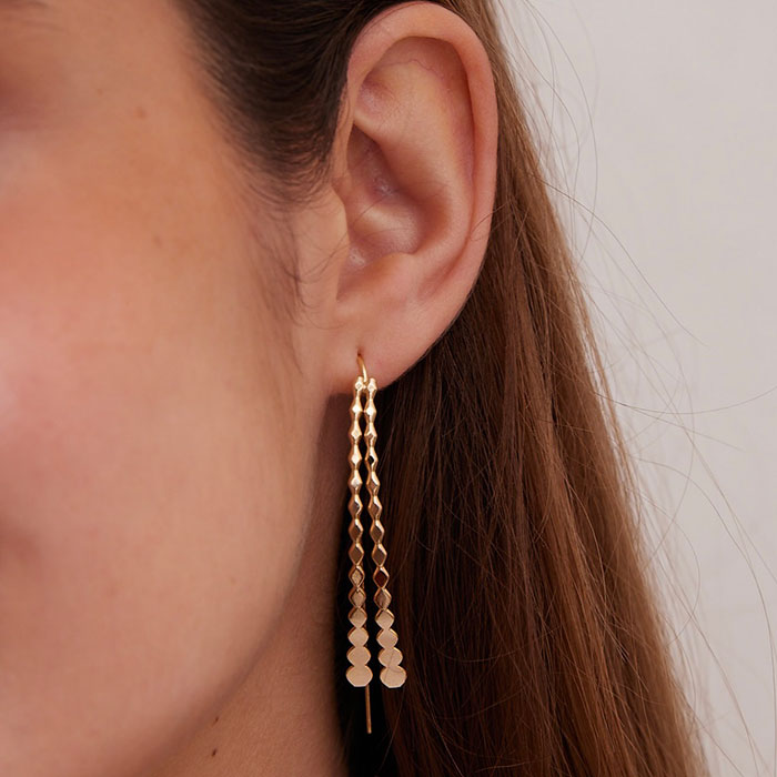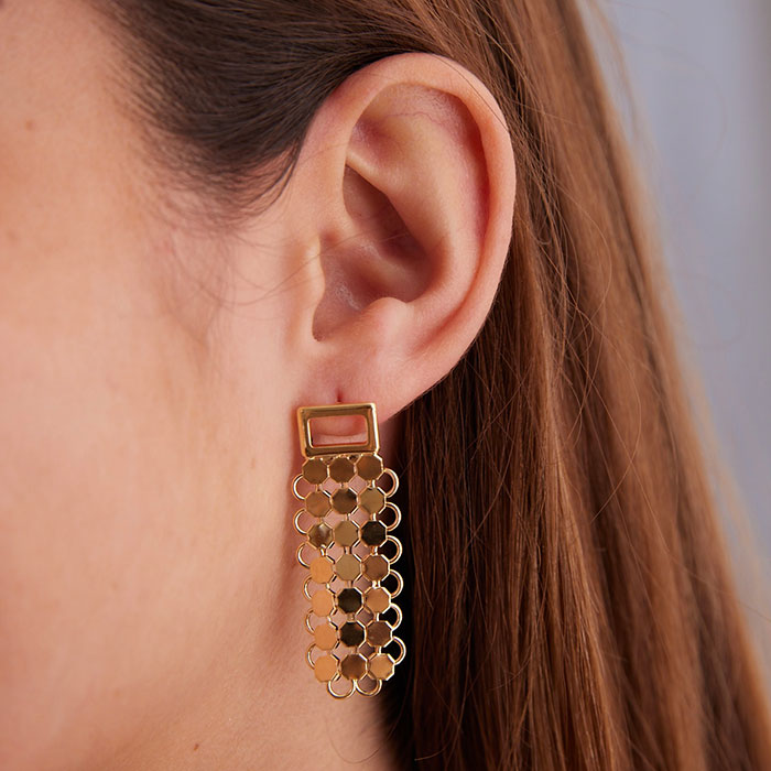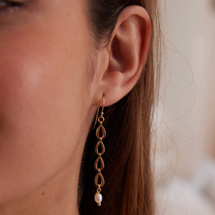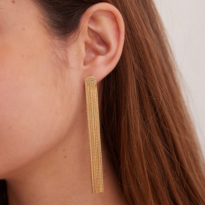 「シンプルな春夏コーデにこなれ感をプラスするなら、揺れるデザインを取り入れてみて。遊び心を感じさせるチェーンモチーフの“MAILLE”ピアスは、日の光を受けてゴールドのきらめきが際立つアイテム。タッセルデザインの“SONIA”ピアスは、繊細なチェーンを重ねた上品な輝きによって、コーデ全体が華やかに仕上がります。美しいカーブデザインが印象的な“MICHELLE”ピアスは、縦のシルエットがエレガントなムード。シンプルながらもほどよい存在感があり、デイリーからフォーマルまで大活躍間違いなしです」。