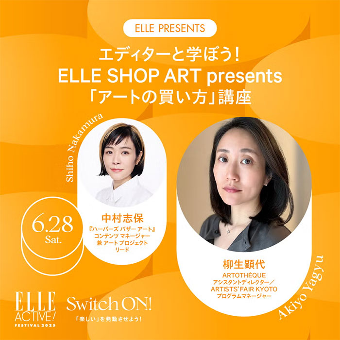6月28日(土)開催の「ELLE ACTIVE! FESTIVAL 2025」では、ELLE SHOP ARTのワークショップとして、アートの楽しみ方をもっと身近に感じられる講座を開催予定。アートに興味はあるけど、何から楽しめばいいか迷っている方にぴったりの内容です!