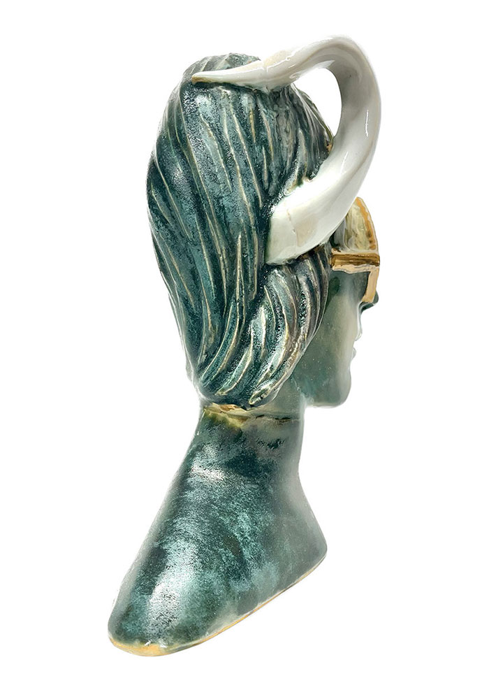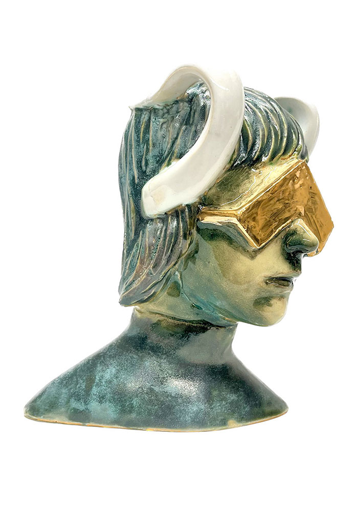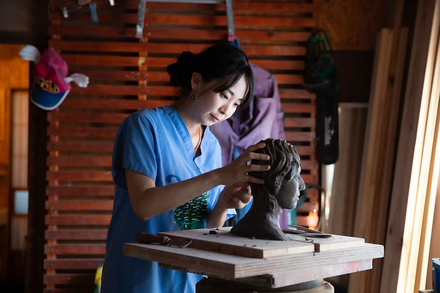 “相反する事柄をテーマに据えた、立体ならではの面白さ”。正面から見た時と、横から見た時で像の印象がまったく異なる。横からみると、なんだか歪んで見える。これは空間の歪みなのか、認識の歪みなのか? 「自分のなかで腑に落ちないことや不思議だなと思うことを、立体作品で表現することが多いんです」(額賀さん)。