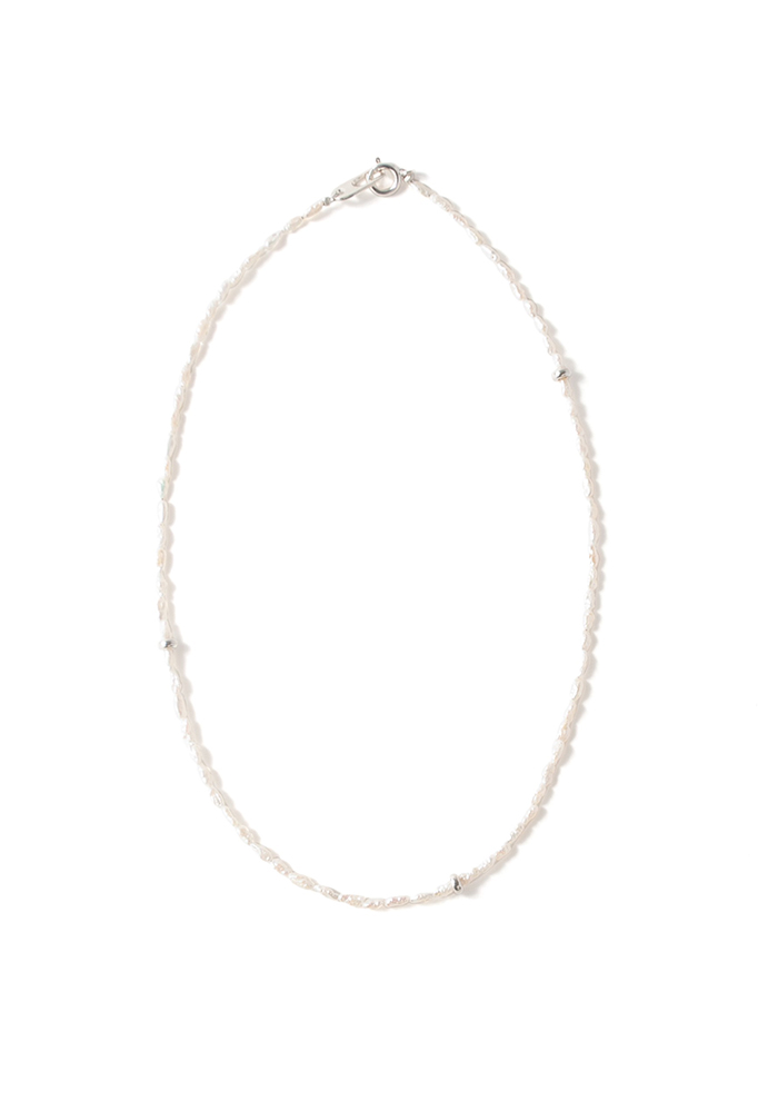 「シルバーと淡水パールの絶妙なバランス感が洗練された印象のピアス。上品さを演出しながらもデイリーユースしやすいアイテムです。ラブリーな雰囲気になりすぎないので、どんなスタイリングにもうまくなじみます」。