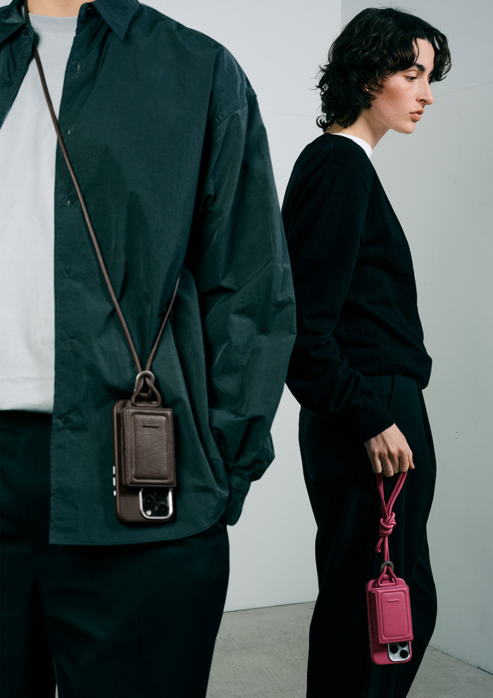 ハンズフリーのスマホショルダーは、忙しい毎日の強い味方。注目のレザープロダクトブランド「オブジェクツアイオー」のケースやストラップなら、どんなスタイルにもスタイリッシュになじみ、シーンをこえて活躍します。同ブランドのデザイナー角森 智至さんの解説を参考に、早速チェックして。