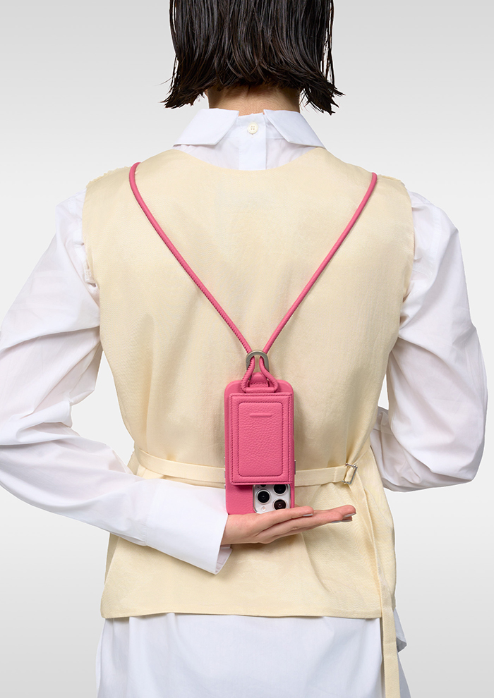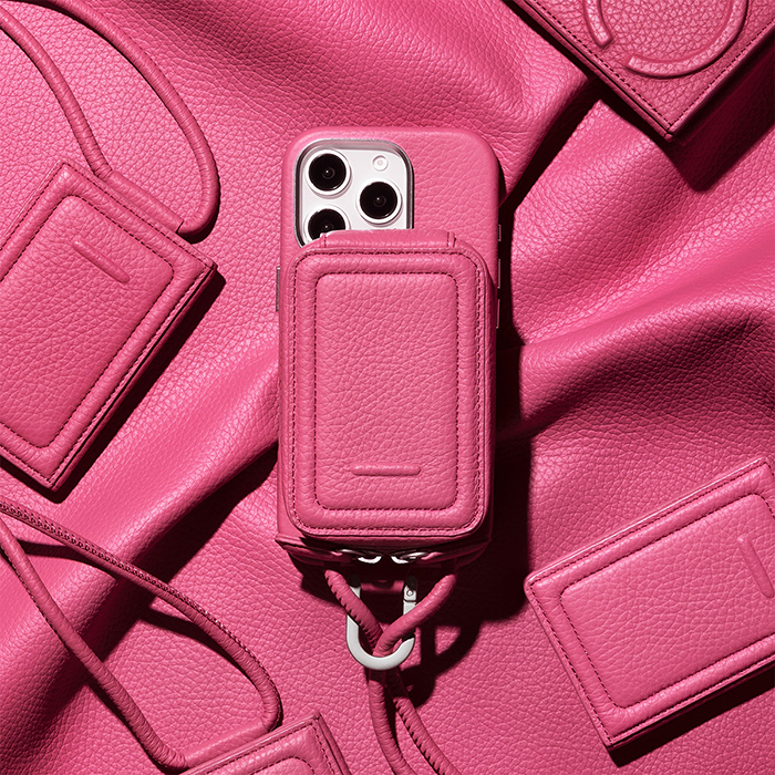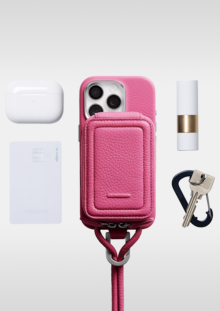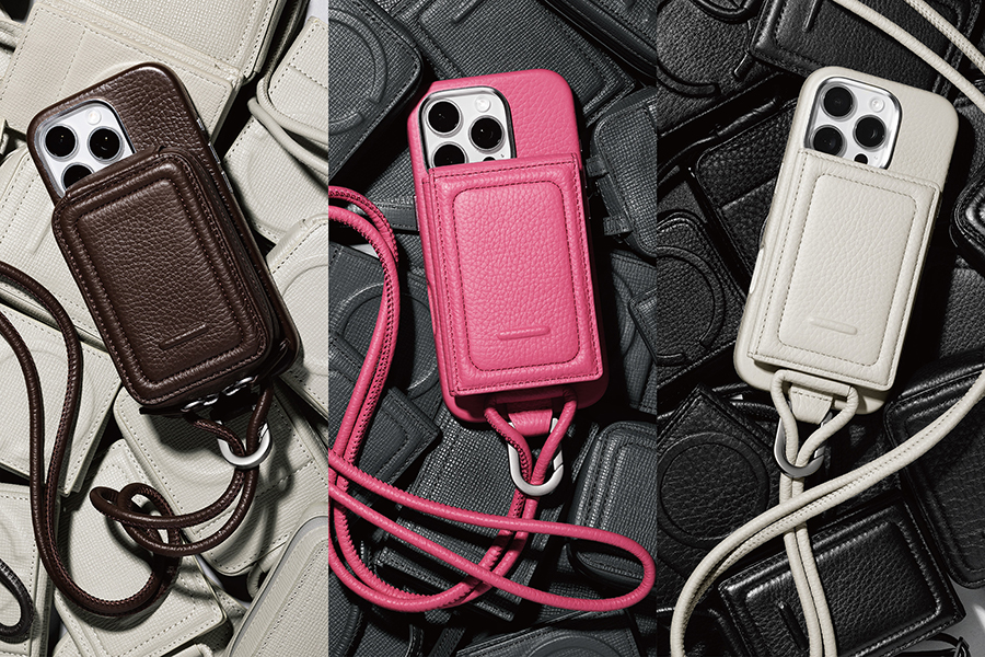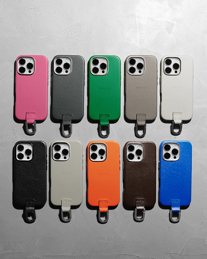 「“現代人の移動をアップデートする”をコンセプトに、機能性と審美性を高次元で調和させた「オブジェクツアイオー」のレザープロダクト。今回、美しく快適な移動を可能にするシグネチャーのスマホショルダーに新色が仲間入りしました。洗練されたアクセントカラーのShocking Pink、無垢でミニマルな印象のMarshmallow、そして深みのあるビターなトーンのDark Brownがラインナップ」。