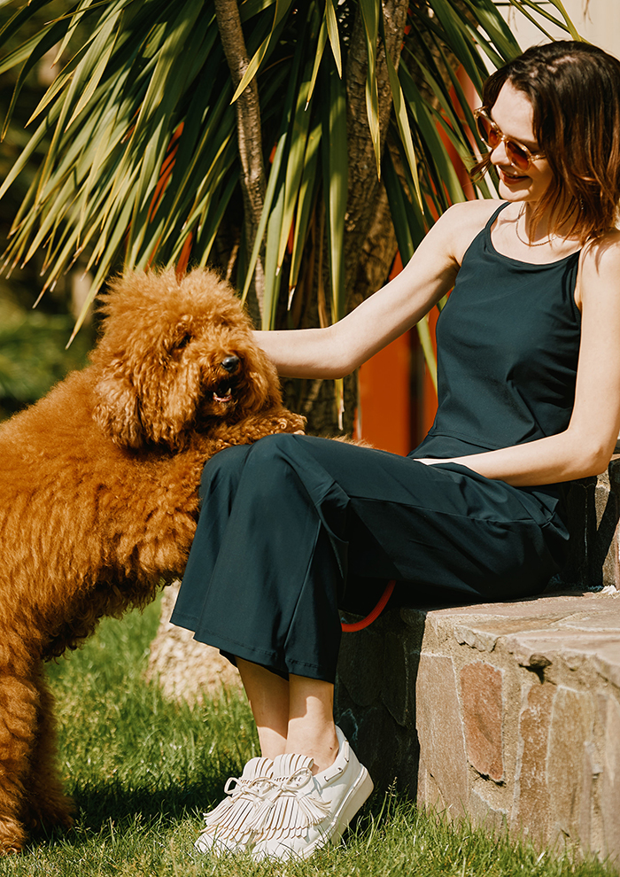 「スタイリッシュさがありながら、体型がきれいに見えるバランス、そして着やすいデザインにこだわり、何度も意見交換をして3型つくりました。コラボ商品には旅行にも便利なポーチ付きなのもポイントです!」