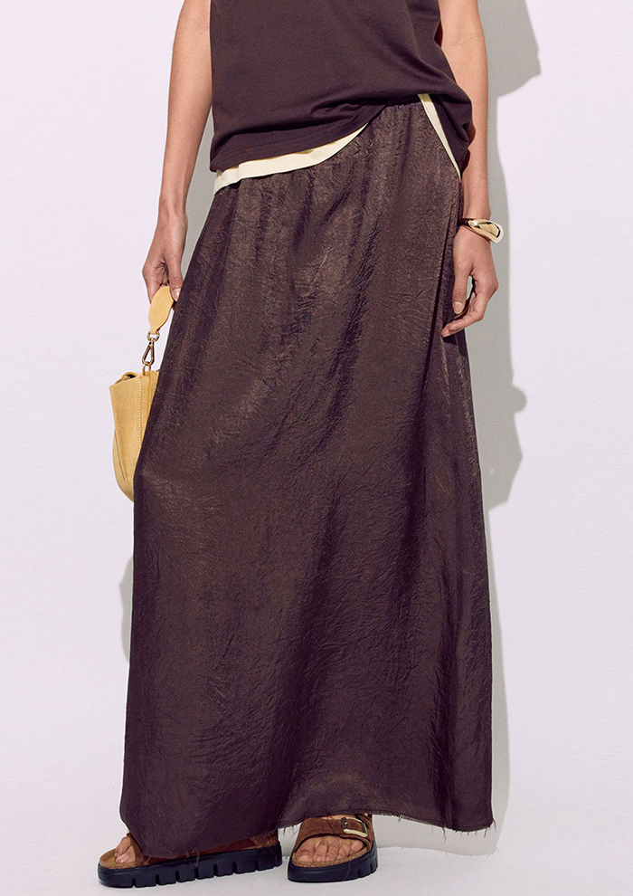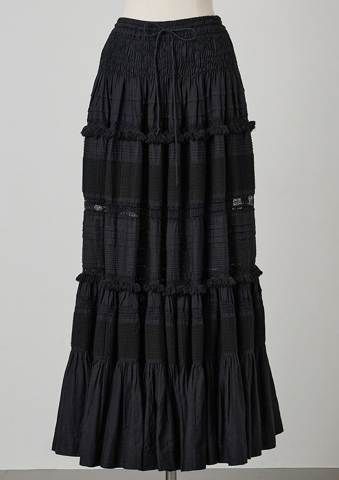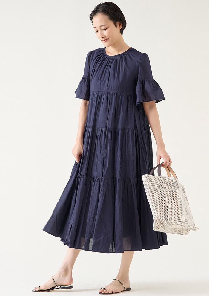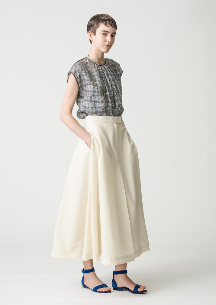 スカートを着るとヒップで広がりやすい方は、Aラインのスカートを選んでみて。ギャザーが入ったフレアスカートを選んでしまうとヒップで広がってしまい、より大きく見えてしまう結果に。腰回りに多少ゆとりがありながらも裾が広がりすぎないAラインを選ぶとすっきり見せられます。フワッとしたフレアスカートを着たい時は、ヒップの下あたりに切り替えの入ったティアードタイプを選ぶのが正解。