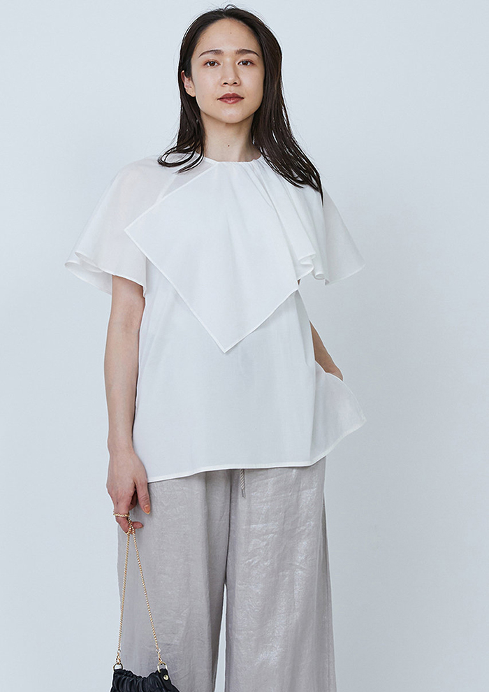 ペプラムトップスは着るだけでスタイルアップが叶うデザイン。カジュアルなTシャツやきちんと感のあるブラウス、今季らしいシアー素材まで種類も豊富なので、シーンに合わせて選びたい。