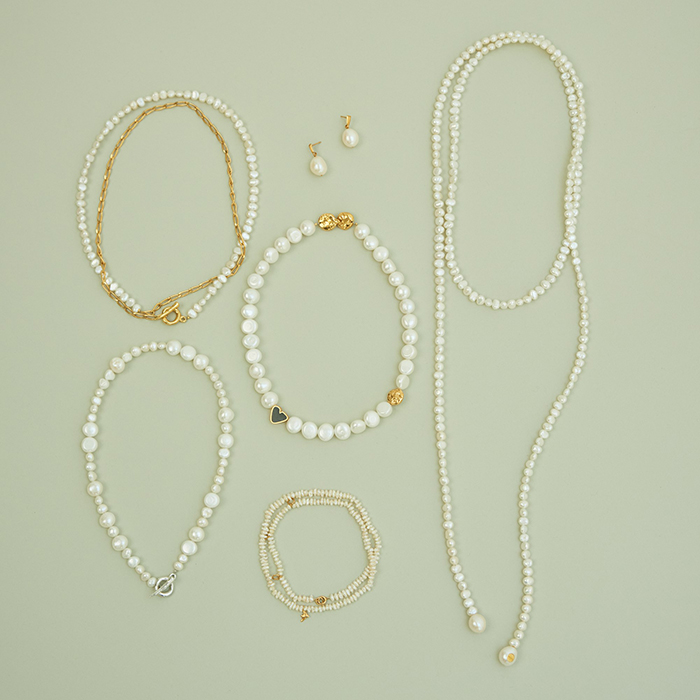「2025年は年間を通した大きなテーマとして、1920年代アメリカの時代背景やカルチャー“アールデコ”からインスパイアされています。カジュアルにもエレガントにも着用できる自由度の高いパールは、ラグジュアリーなモデルから大人スタイルに気軽に取り入れられるアイテムまで、幅広いラインナップ。そして毎日にリアルに寄り添うピアスや、遊び心のある歪な形のストーンハートリング、“YU-KIN”メタルシリーズなど、年齢を重ねても好奇心旺盛な大人の女性へ向けたアイテムが満載です」。