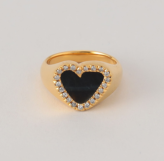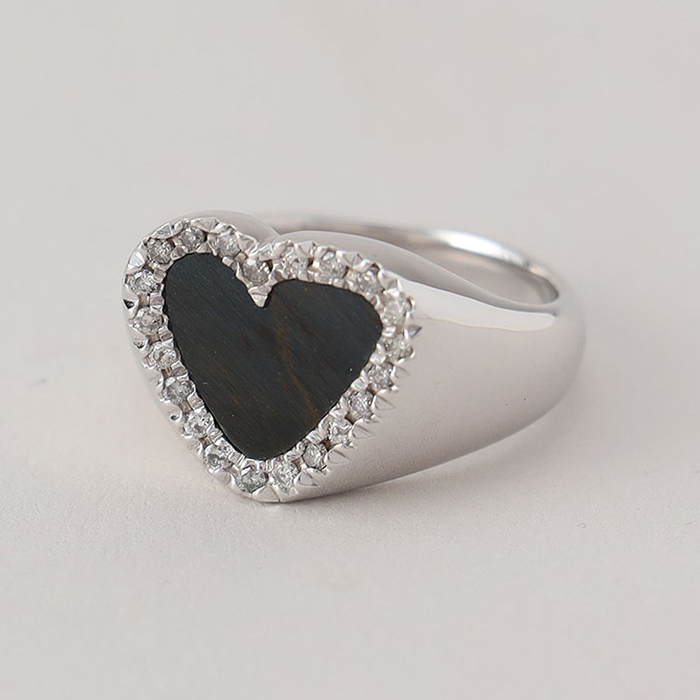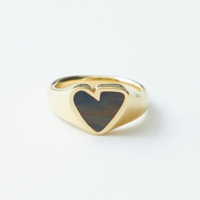 「天然石そのままの表情を生かした“How Raw”シリーズからは、ラフなハートモチーフのストーンリングにご注目を。ひとつひとつ、宝石彫刻の伝統工芸技術で原石から削り出してつくっており、天然石ならではの異なる柄の入り方や色味が魅力です。こちらはピーターサイトストーンを使用。普通のハートをつけるのは気恥ずかしいという方にも、手描きでいびつな形のハートと天然石の組み合わせが甘すぎず、大人の女性にぴったり。男性からも人気のあるユニセックスアイテムです」。