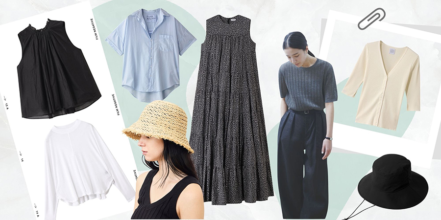 暦では立秋を過ぎても、まだまだ続く猛暑とのお付き合い。少しでも快適に過ごすためにも、涼しげで心地よいウェア&グッズを取り入れて。汗ばむ肌にやさしいトップスや、日差し&冷房対策に最適な羽織、夏帽子など、6つのカテゴリー別にバイヤーがおすすめアイテムをご紹介します。