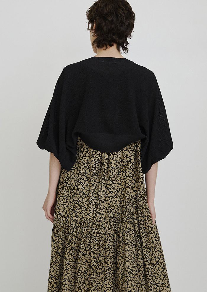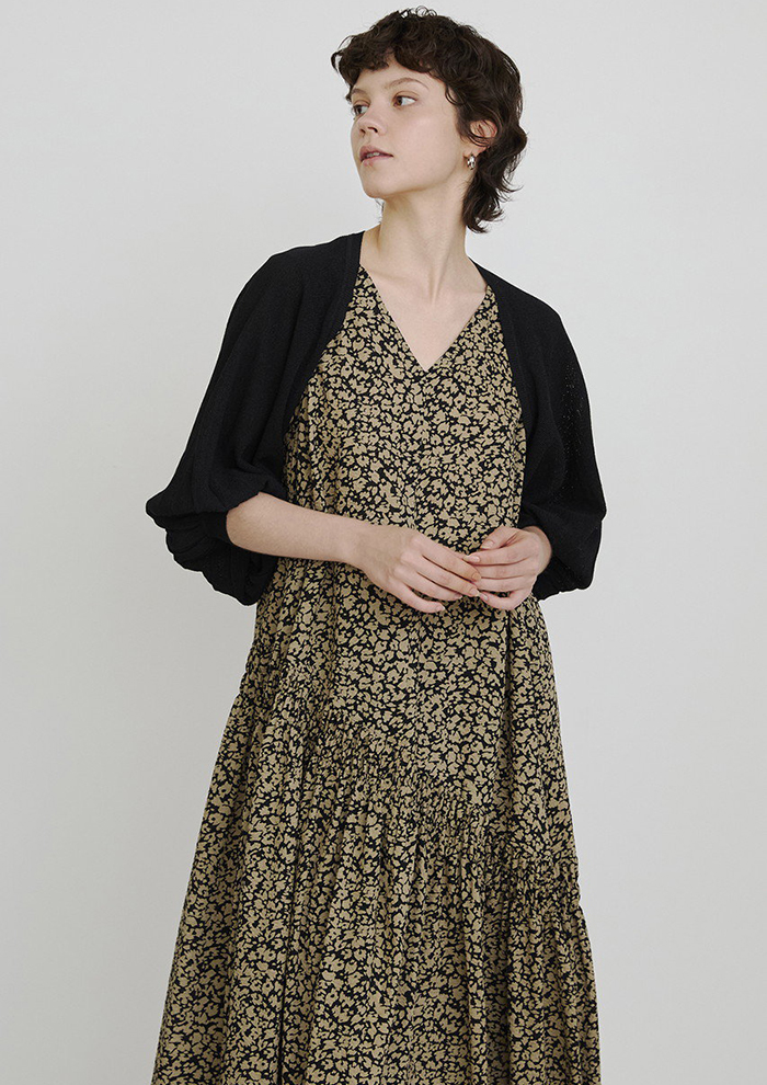 「ノースリーブや半袖ワンピースの日差し対策にはボレロカーディガンを。ドレスアイテムのラインナップが豊富な「ハウス オブ ロータス」ならではの、ワンピースと合わせやすいこだわりの着丈です。ドライタッチな糸で編み上げているので、汗ばむ日でもべたつかないのもうれしいポイント(バイヤーNAO)」。
