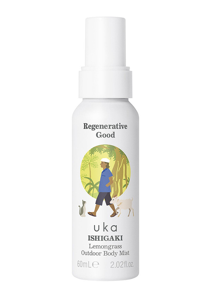 「昨年好評だった「ウカ」の“Outdoor Body Mist”が今年も登場。石垣産レモングラスやペパーミントなどの天然精油の香りが広がり、夏の外出時に心地よくお使いいただけます。保湿成分※も配合し、肌にみずみずしくなじむ使い心地。アウトドアのおともにぜひ!(バイヤーYUKO)」。