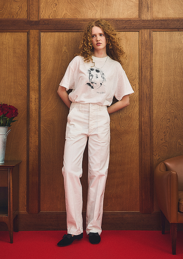 「まるで何年も着込んだような風合いを再現した、ムラ感たっぷりのスラブ糸Tシャツ。薄手で柔らかな生地は、着るほどになじみ、味わいを増していきます。ビンテージのようなかすれプリントも魅力的(バイヤーMAKI)」。