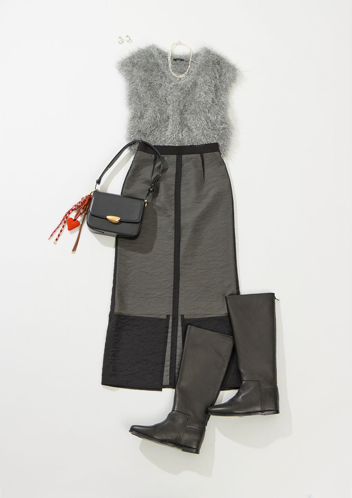 「シックにブラックアイテムでまとめて食事会にも。幅広いシーンで楽しめます」。