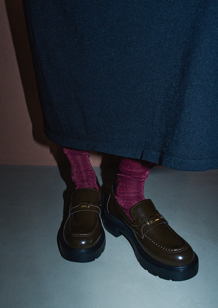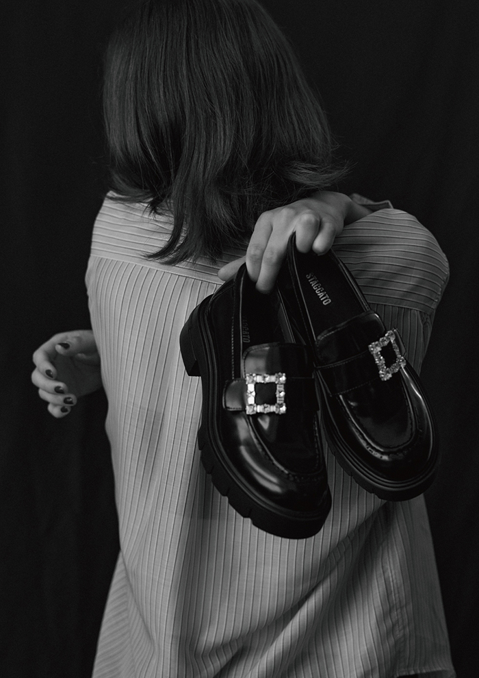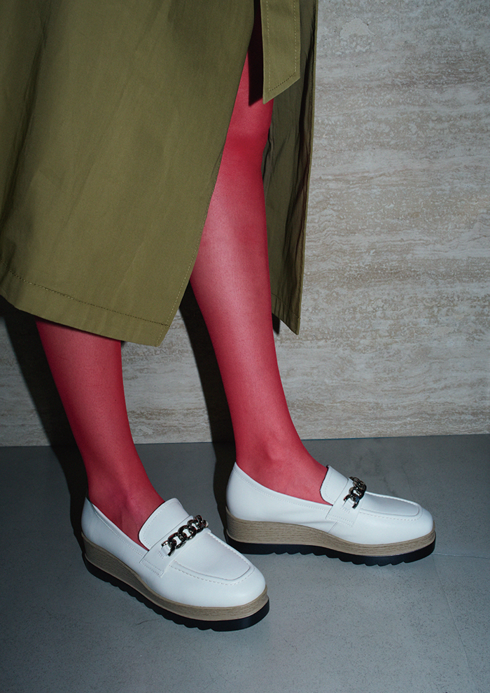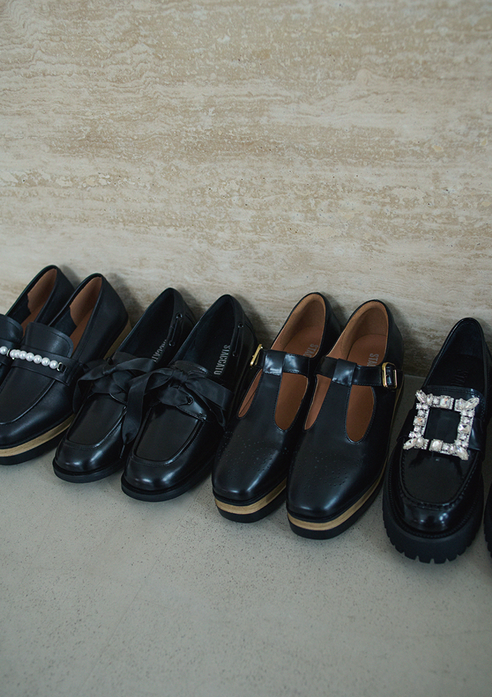 「「スタッカート」で人気のローファーに今季も新デザインが登場。トレンドスタイルからワンピースやパンツスタイルまで相性抜群です」。