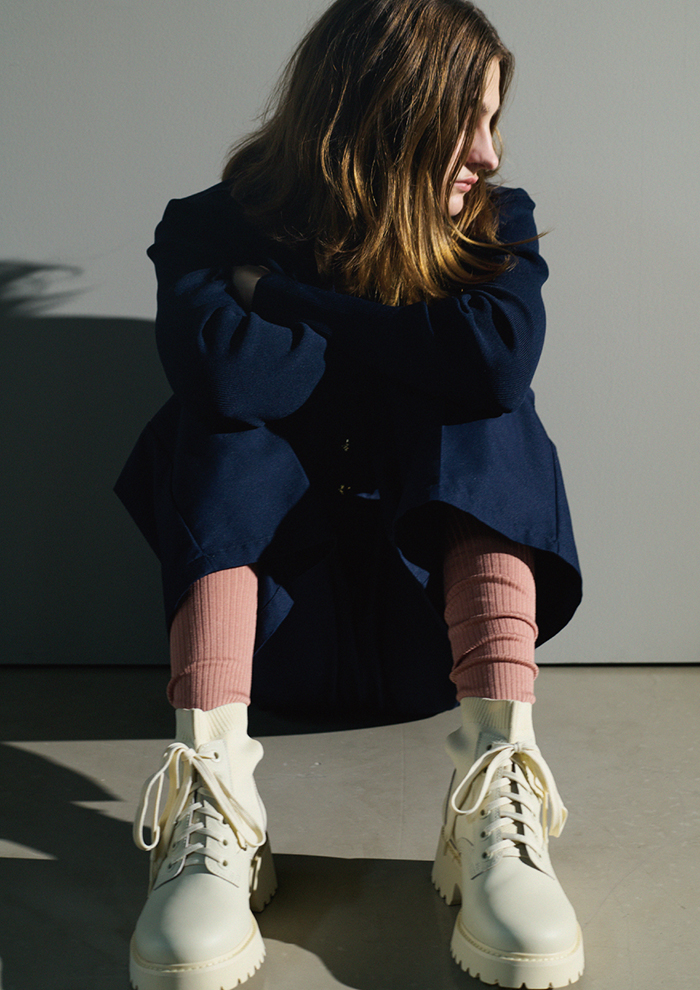 「シーンを選ばすラフに履けるレースアップ風ニットコンビブーツが待望の再登場。モードなフォルムに、トレンド感のあるほどよいボリュームのタンクソールがアクセント」。
