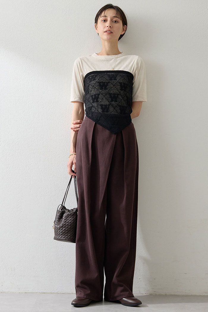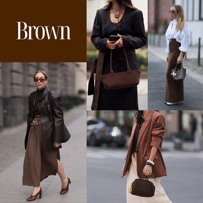 秋の入り口に最も簡単に取り入れられるが「ブラウン」。例えばシンプルな白Tにブラウンのカーディガンを羽織るだけで、夏から秋の装いへスムーズにシフトできます。バッグやシューズなど小物で取り入れるのもさりげなく季節感を取り入れるのにおすすめ。