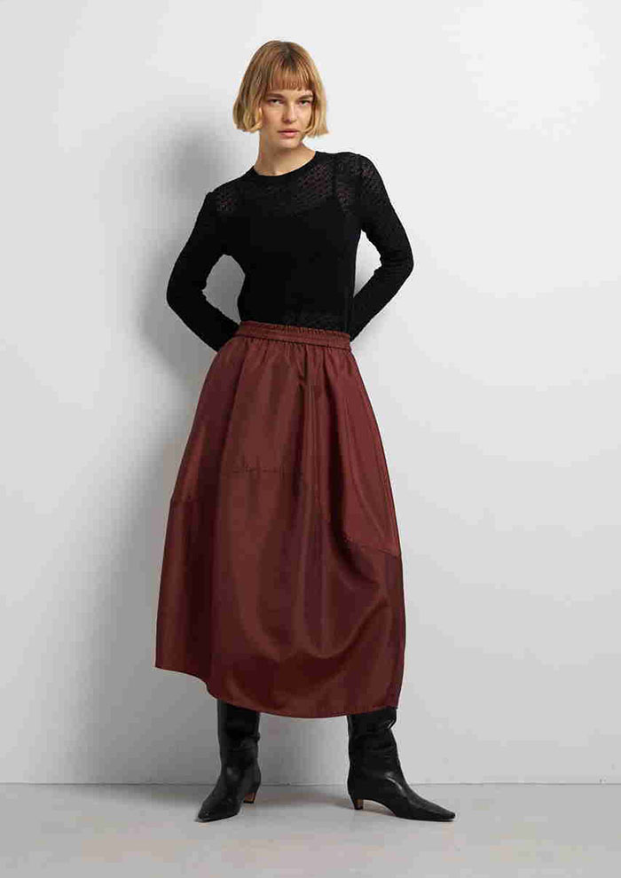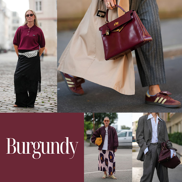 次のステップにおすすめなのが、深みのある赤「バーガンディ」。ワインのような濃厚な色合いは、秋らしい温かみと上品さを一度に叶えてくれます。バーガンディをコーディネートに取り入れるだけで全体が華やぎ、さらに大人の余裕を感じさせる洗練されたコーデに。小物で差し色として使えば、シンプルなベージュやグレーのスタイリングがこなれ感たっぷりに。季節感を意識しつつ、落ち着いた雰囲気を出したい大人女子に最適です。