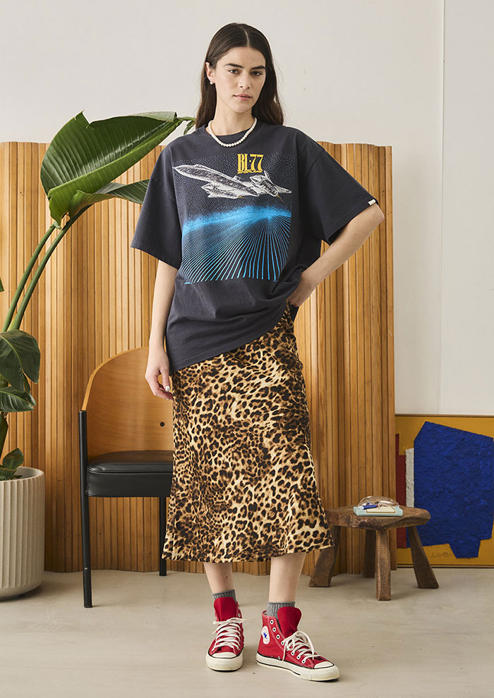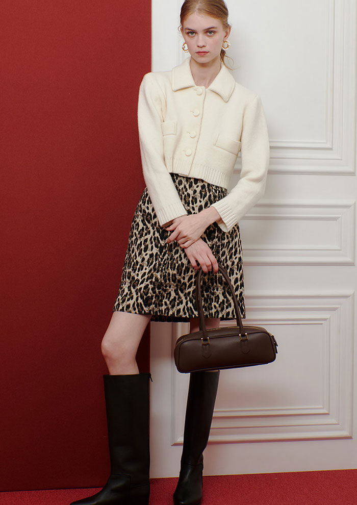 秋のおしゃれを一歩進めたいなら、ぜひ挑戦してほしいのが「レオパード柄」。存在感のある柄は取り入れるだけでコーディネートの主役になり、シンプルなアイテムと合わせても一気にモードな雰囲気に仕上がります。とはいえレオパード柄の面積が広ければ広いほど存在感はアップして、難易度が上がってしまうので、まずはバッグやスカーフといった小物での一点投入がおすすめ。柄の分量が少なければ、意外と普段のコーデに自然となじみます。慣れてきたらスカートやアウターに取り入れて、主役級の着こなしに挑戦してみるのも◎。