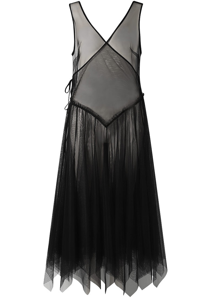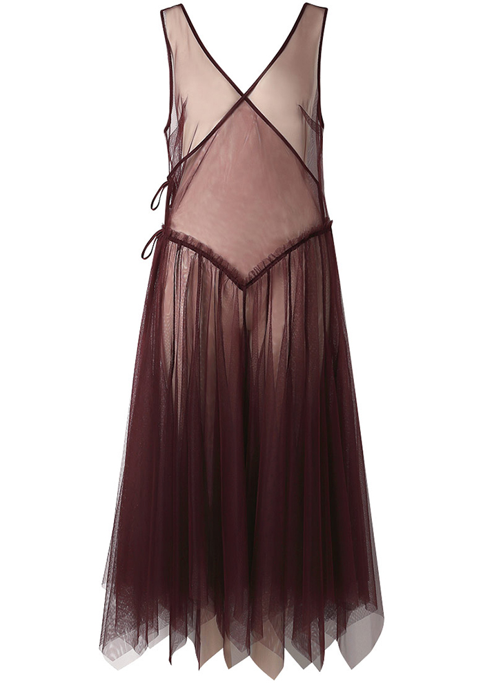 「24枚ものチュールをつなぎ合わせた「ユエ」定番のスカートを、「フェティコ」らしくアップデートしたマキシ丈のカシュクールドレス。チュールの美しいグラデーションと、動きに合わせてさまざまな表情を見せる特殊な裾ラインが魅力です」。