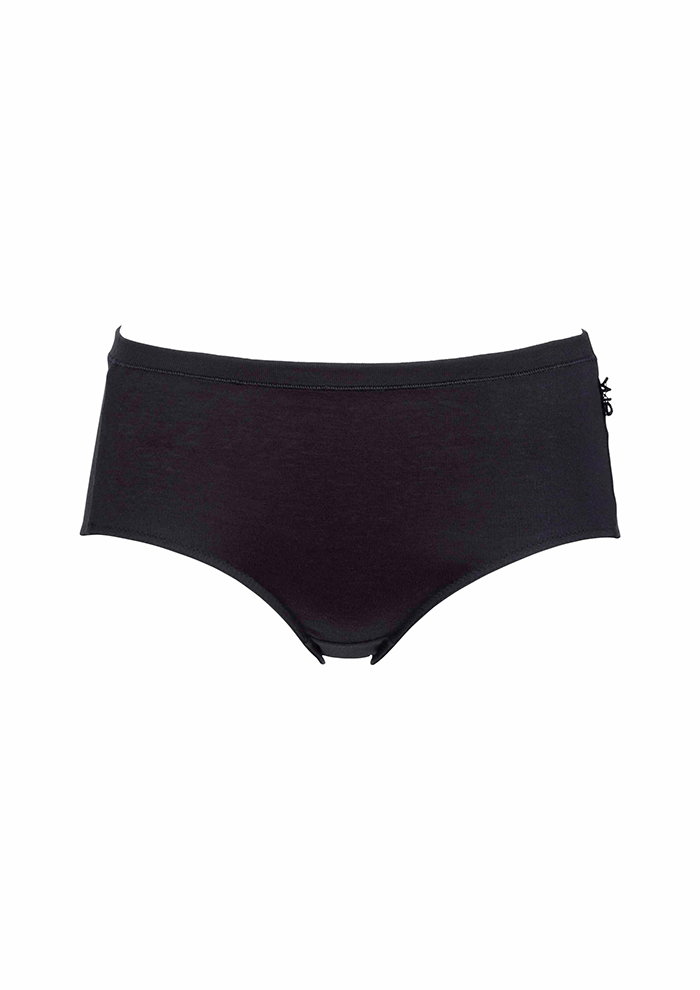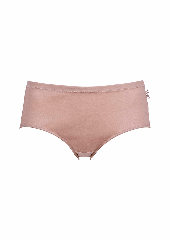 「ショーツも素材にこだわって。前出のインナーとセットで合わせたいショーツがこちら。希少性の高い綿スビンゴールドシュプリームを100%使用したニットを身生地に使用し、ウエストはパワーネット内蔵の生地を折り返した始末でしめつけ感をおさえ、裾には綿混のテープを用いています」。