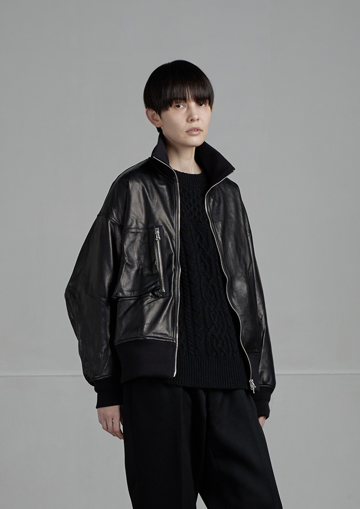 「秋冬に最適な温もりと風合いを兼ね備えた、「シシ」のレザー1ポケットフライトジャケット。しなやかでいて軽いレザーを使用し、着込むほどに体になじむのが魅力です。シンプルな1ポケットデザインがミニマルな存在感を放ち、カジュアルから上品なスタイルまで幅広く対応。ゆったりとした着心地で、秋から冬のワードローブに欠かせない存在に」。