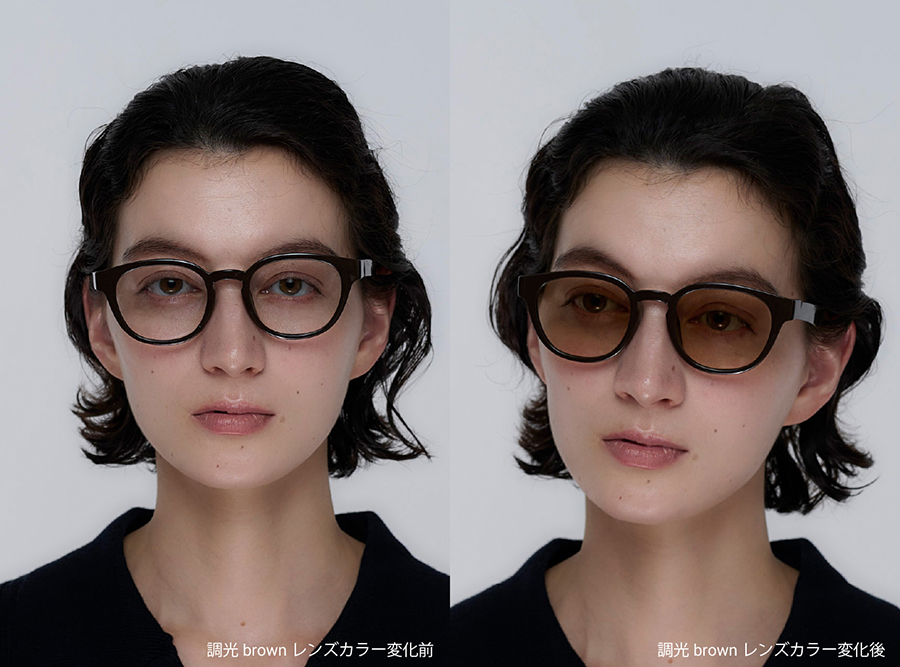 「室内ではクリア、屋外では紫外線に反応してブラウンに変わる調光ブラウンレンズと、反射光を抑えクリアな視界を保つ偏光調光ブラウンレンズが新登場。秋冬の街歩きやドライブ、アウトドアなど、さまざまなシーンで目元をやさしく守りながら、季節の景色を美しく映します」。