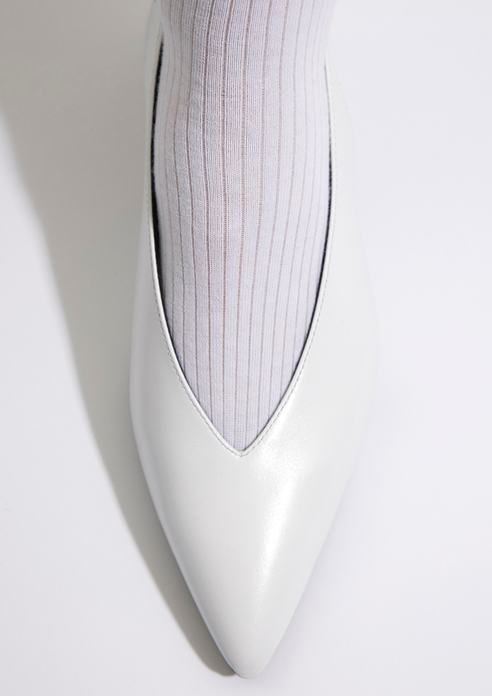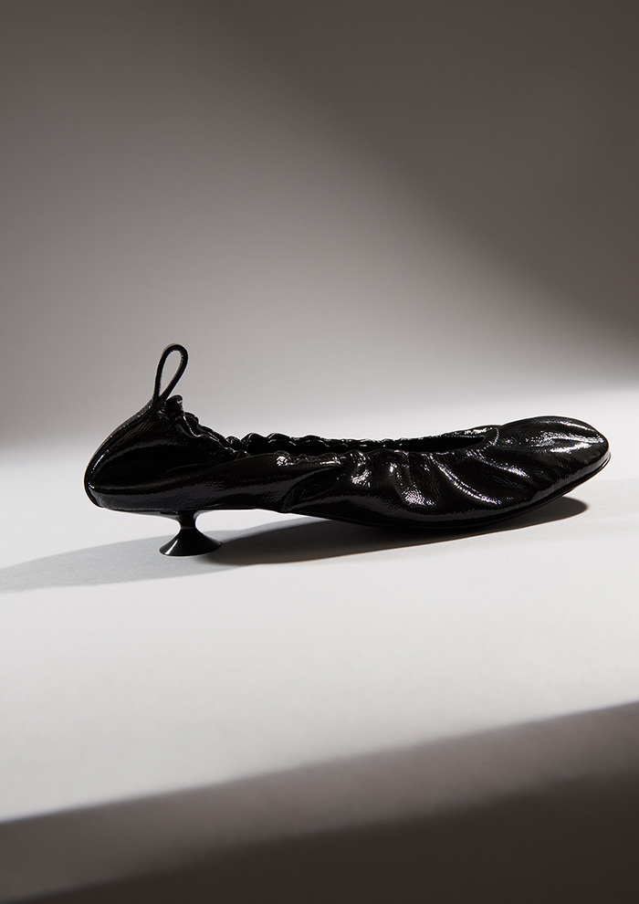 「バレエシューズをフレッシュな解釈で表現した“ORB”のバレリーナパンプスは、フェミニンなギャザーリングと2.5cmのキトゥンヒールが愛らしい一足。フラットのバレリーナに比べて、歩きやすさと適度なスタイルアップを叶えます」。