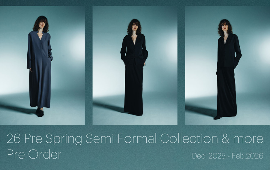 「ものづくりの息吹が感じられる素材、立体的なシルエット。トレンドにとらわれないタイムレスで本質的なアイテムを通して、まとう人の内面的な豊かさを表現したいと考えています。それは、季節も年月もこえて愛することができる服。今季も、着るほどに体と心になじみ、ともに年を重ねられる服を提案します」。