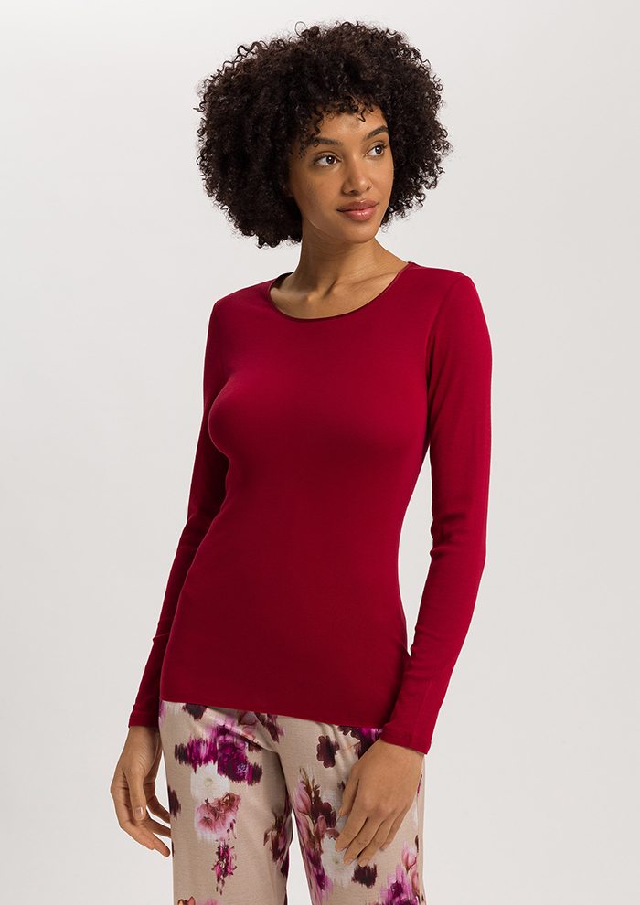 「1920年代にココ・シャネルがドレスの下に「ハンロ」の伸縮性のある肌着を着用することをすすめたといわれ、1930年代に“コットンシームレス”の先駆けである、シンプルで快適なアンダーシャツのコレクションが登場しました。それを起源に、2011年には素材と丈の長さをリニューアルしましたが、デザインそのものは1985年のデビューの時と変わらないまま。今年誕生40周年を迎え、ブラックパールをイメージしたシックなカラーとレッドダリアをイメージした華やかなカラーが2色登場しています。ぜひチェックしてみてください」。