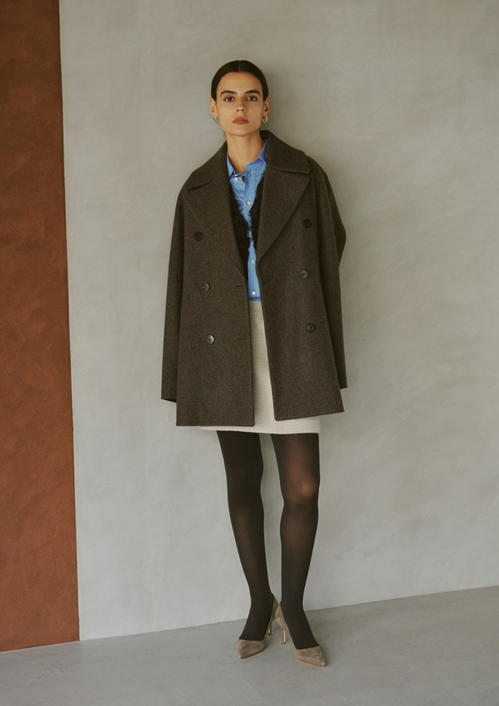 「今年気分なミニスカートも登場。シンプルなデザインながら、レニーリバーの素材が適度な立体感と表情を生み、体のラインを拾わずに着用できます。同シリーズとセットアップで着用するのはもちろん、「カオス」の名品である“スーペリアコート”とも相性抜群。マニッシュなアウターにプラスするだけで、ぐっと今年らしいスタイリングが叶います。レディなミニ丈が、いつものスタイリングをブラッシュアップ」。