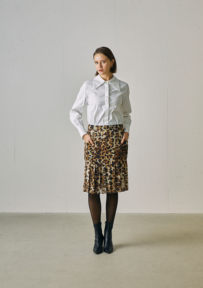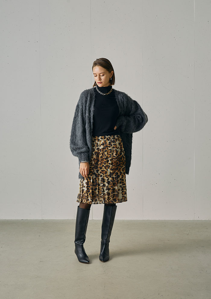 「クラシックなスカートに映えるレオパード柄。華美になりすぎず、知的な女性らしさを引き出す、大人の余裕を感じさせるアクセントに」。