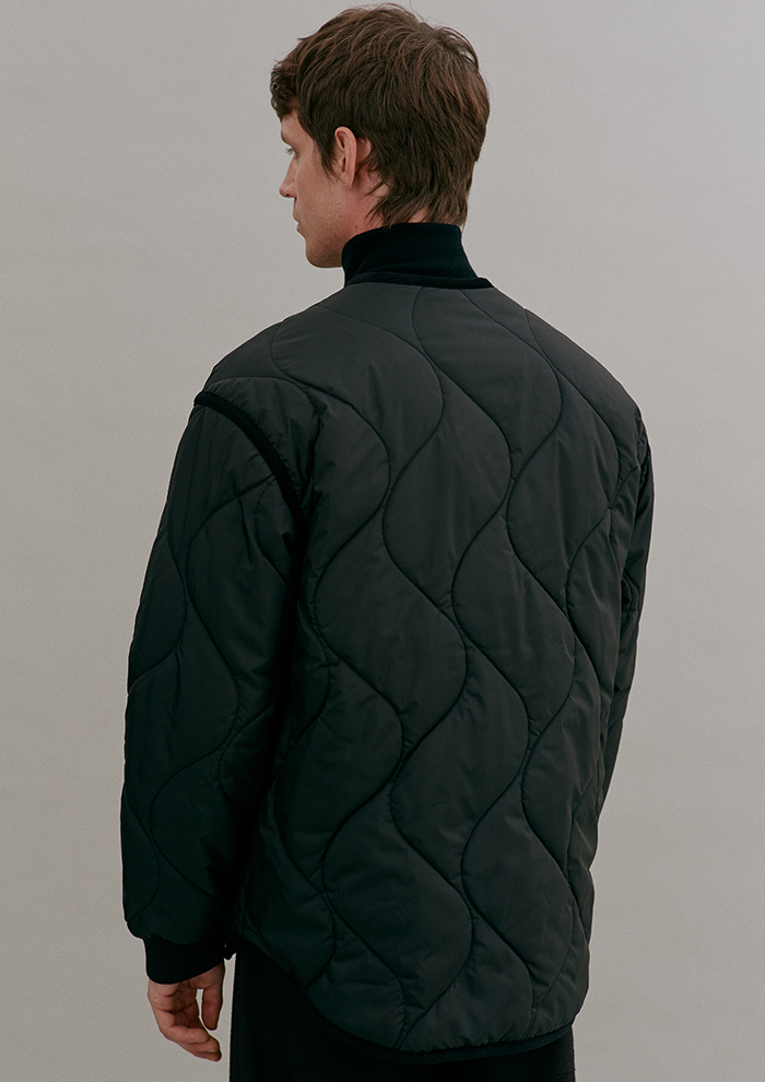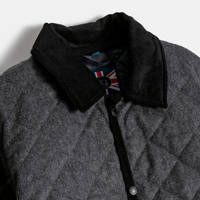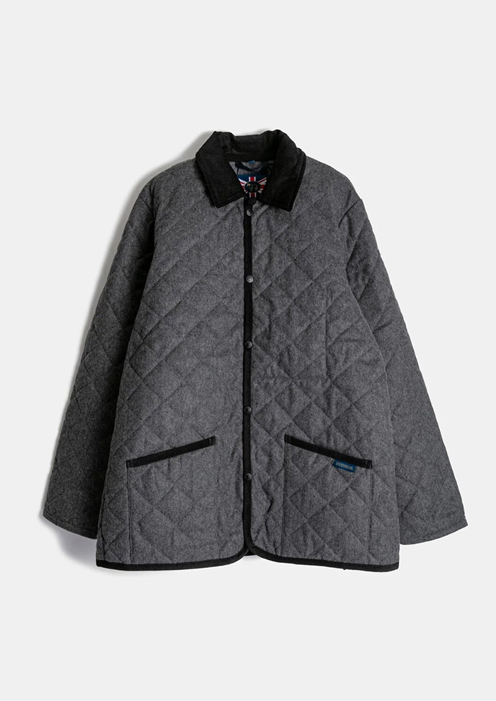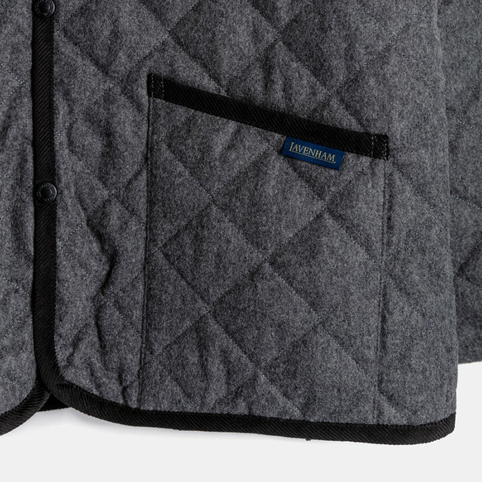 「こちらは、ボクシーなシルエットが魅力のライナージャケット。「ラベンハム」の伝統に敬意を表し、オリジナルホースラグに使われていたパターンでキルティングを施しました」。