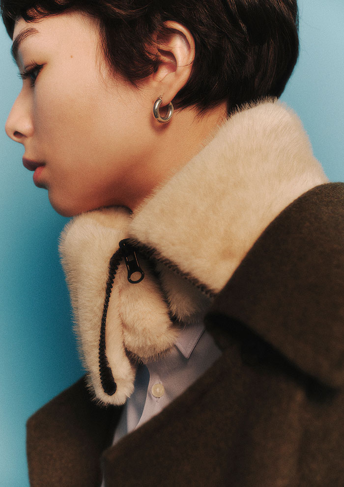 「エコファーを使用したコンパクトなスヌードは、ほどよくフィットして首元をしっかりとあたためてくれます。上下から開閉できるので、トップスやアウターのボリュームに合わせてアレンジが可能。持ち運びしやすいので、寒暖差が大きい季節や電車移動など、温度調整が難しいシーンにも重宝します」。