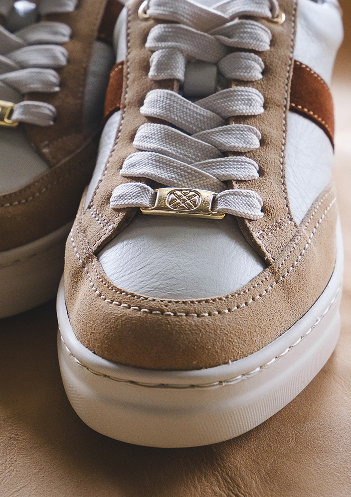 「ナチュラルなムードと都会的な洗練が共存する、大人のためのレースアップスニーカー。上質なレザーとスエードを切り替えたアッパーが、足元に奥行きと品を添えます。くすみ感のあるカラーリングが秋冬の装いにしっくりとなじみ、カジュアルながらも上品な印象に。ラウンドトウとやや厚みのあるソールで、快適さとトレンド感を両取り。ベーシックにひと捻り効かせた、今シーズン注目の一足です」。