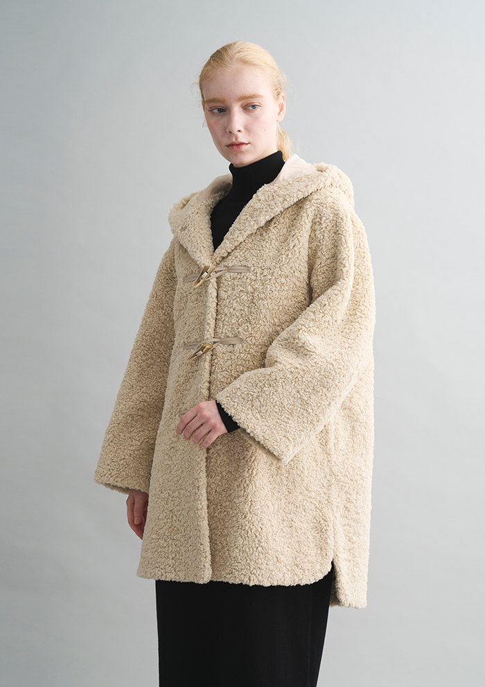 「毎年、秋冬の一番のヒットアイテムとなっている“POODLE BOA”シリーズ。カジュアルにも、エレガントにも着こなせるスタイリングを邪魔しないアクセントとして、毎年新作を楽しみにされる方も多い人気アウターです」。