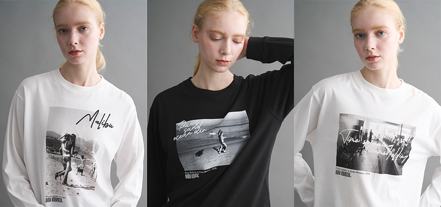 「30周年のアニバーサリーイヤーを記念して、春夏に人気のAKIRA KOBAYASHI TEEから初のロンTが登場しました。ブラックの色展開も今回が初。“西海岸の日常”をテーマにピックアップしたアートワークは3柄です。どの柄もチルな雰囲気で、肩の力が抜けた着こなしを実現。スタイリングによって、横型、縦型と使い分けるのもおすすめ」。