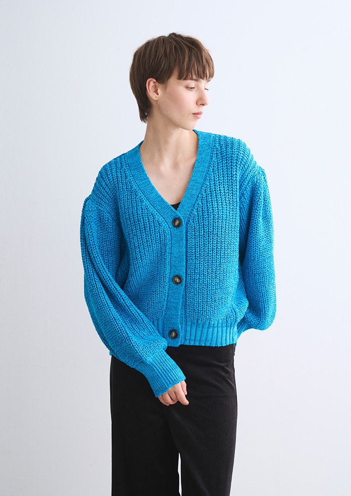 「ジャケット型もノーストレスで着られるソフトな着心地のため、カーディガン感覚で活躍。キャミソールやドレスと合わせればホリデーシーズンにも最適です。もちろんカットソーと合わせれば毎日のコーディネートのスパイス役に。グラフィックTなどのボーイッシュなアイテムと合わせるのもおすすめです」。