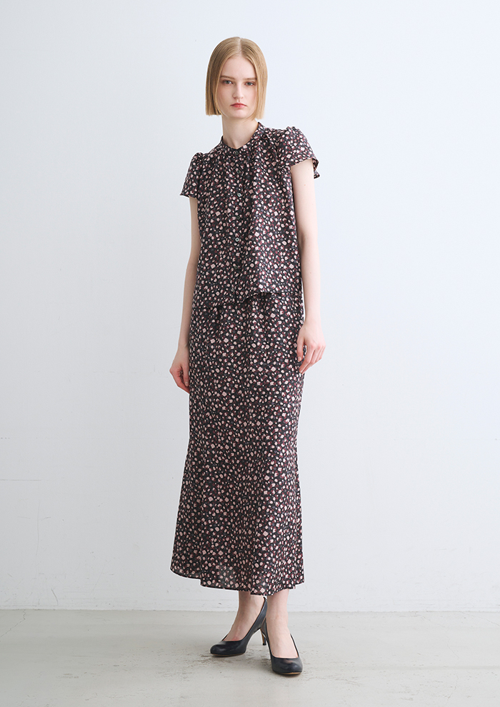 「スタイリングを引き締める、すっきりとした印象のペンシルスカート。ほどよい肉厚の編み地で下着のラインを拾いにくいのもうれしいポイント」。