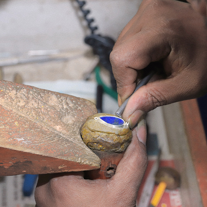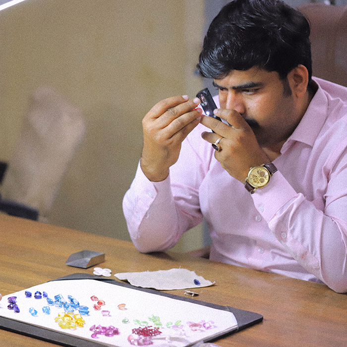 「宝石の都と称されるインド・ジャイプール。伝統と革新、西洋と東洋が交わるこの地は、5000年のジュエリー文化を今に受け継ぐ職人と、世界最大級のカラーストーンが集う街。「クイ」専属の工場もその中心にあります」。