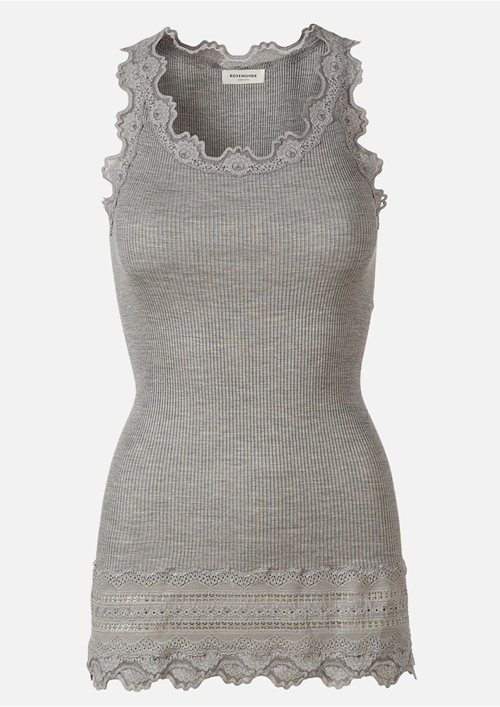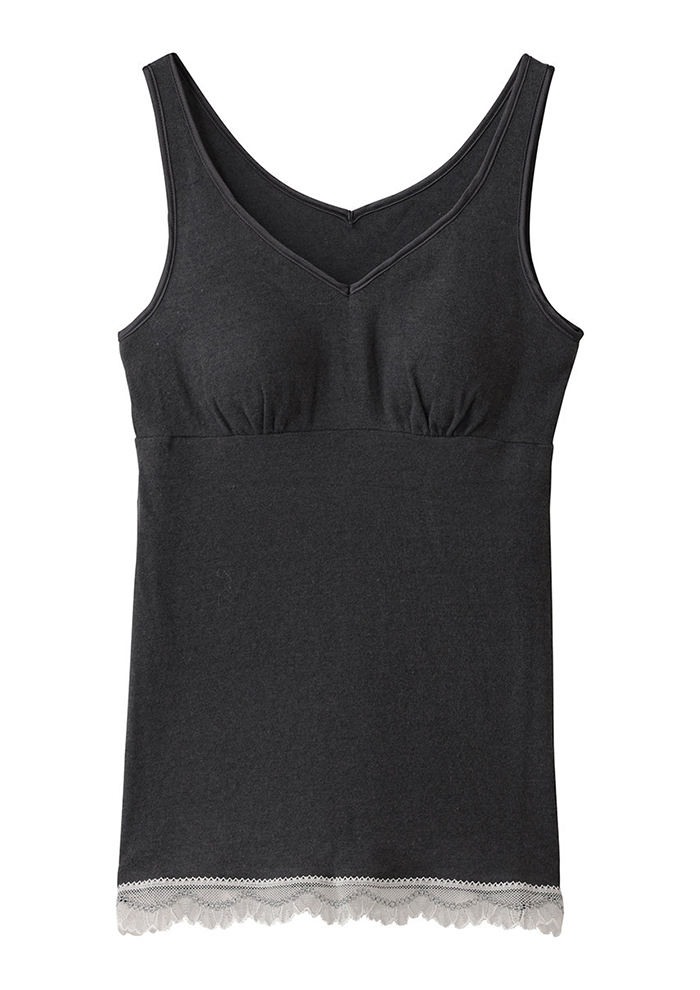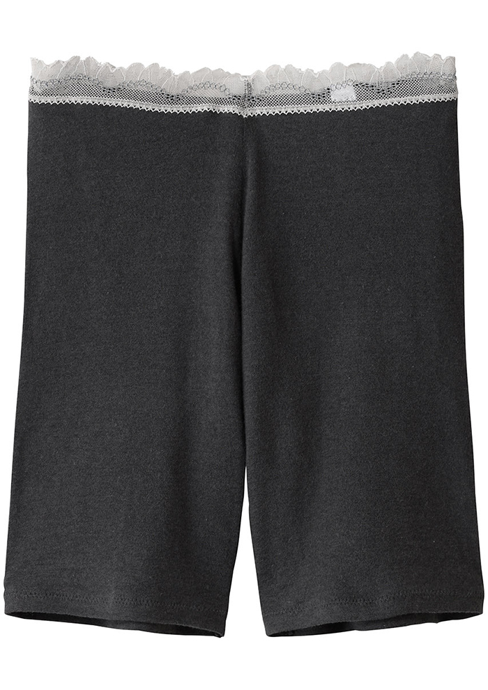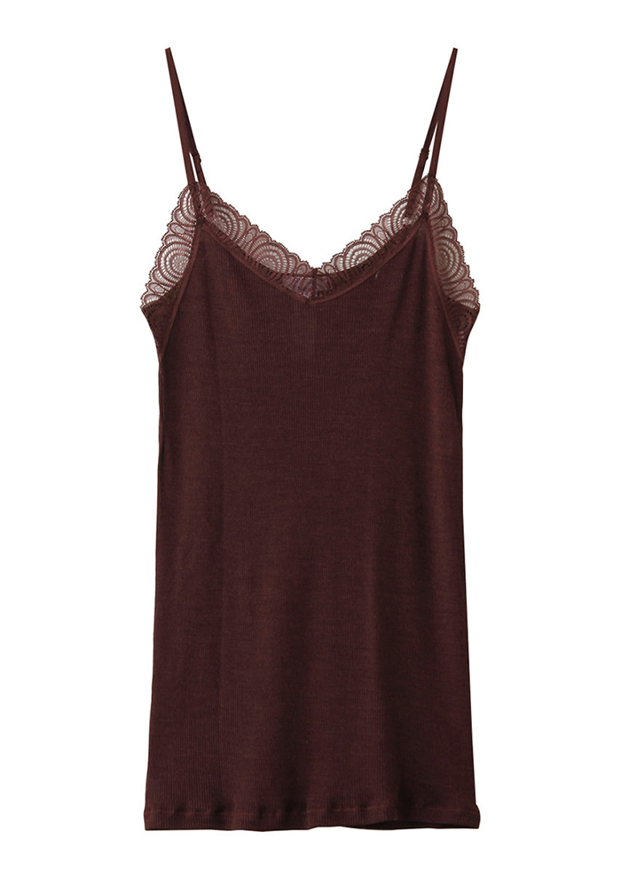 「繊細なジャカードレースが美しい、エレガントな大人のインナーは「ハンロ」の“WOOLEN LACE”シリーズから。メリノウール×シルクの軽やかなリブ編みが暖かく、秋冬のワードローブに頼もしい一枚です」。