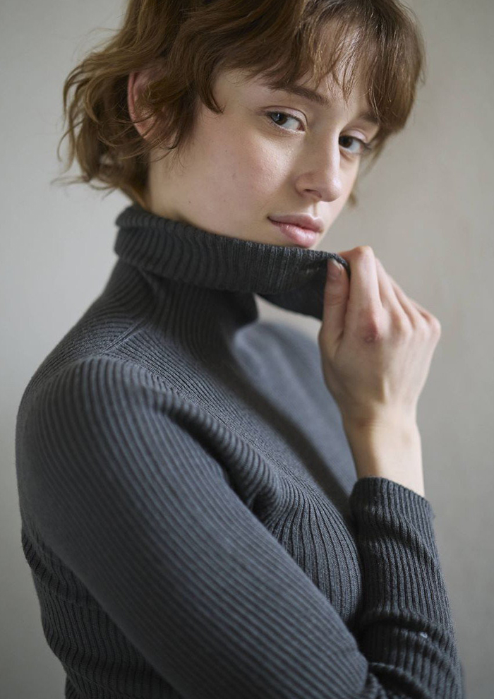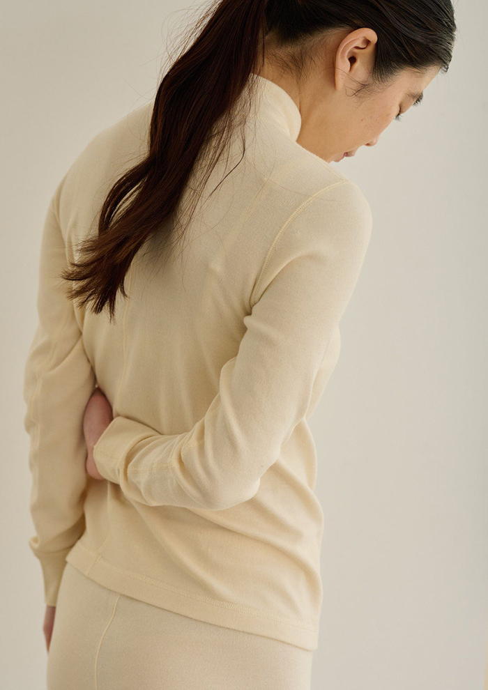 「おうち時間からワンマイルまで活躍する、シルク100%のタートルネックトップス。軽やかで心地よい肌触りは、ずっと着ていたくなる極上の仕上がり。ボディにほどよくフィットするシルエットが、全体のラインを美しく見せてくれて、どんなボトムやアウターにもすっとなじむ万能アイテムです。」