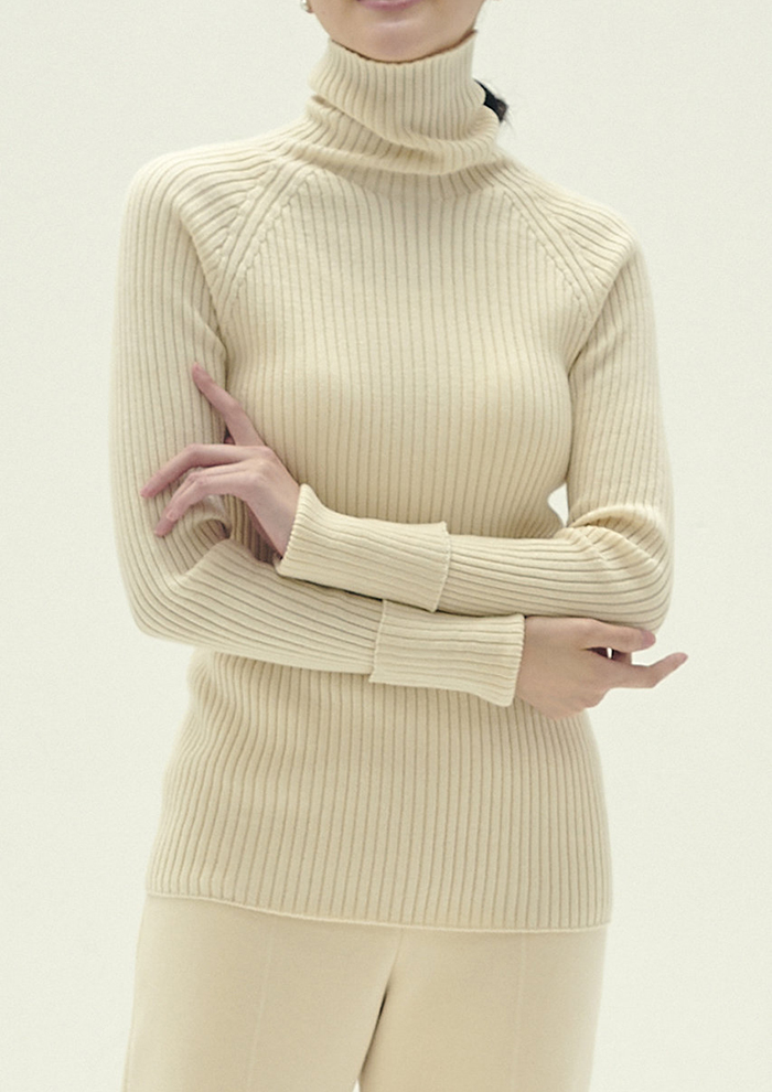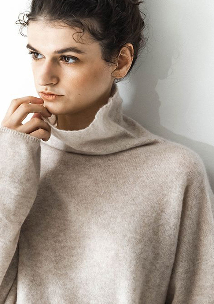 「ここ数年エル・ショップでも大人気なのが、なめらかな肌触りと暖かさが魅力のリブタートルネックプルオーバー。カシミヤとオーガニックコットンの無縫製で、着るほどに柔らかいふんわり感が楽しめます。アルパカ混オーガニックコットンのタートルセーターは、リブラインが女性らしい印象。どちらも秋冬のレイヤードや1枚着に活躍する必須アイテム」。