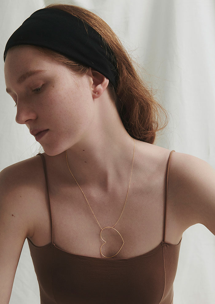 「“愛情”や“幸福”といった意味を持つハート型。身につけることで、豊かな感受性を表現し、あなたをより美しく見せてくれるでしょう。すっきりと首元が開いた服に合わせれば、ナチュラルな色香を演出」。