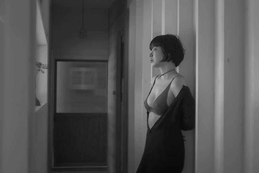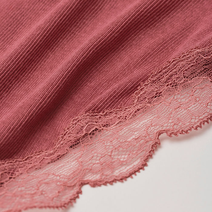「“ETHOS(イートス)”は、40代のマリアをイメージしました。コットンシルクリブは、奈良県にある「アラキニット」へオリジナルで特注した素材に、フランス製の繊細な花柄ストレッチリバーレースを組み合わせたもの。肌に溶け込むような柔らかさと、着ていることを感じさせない軽やかさが、他にはない無二の一着を実現」。