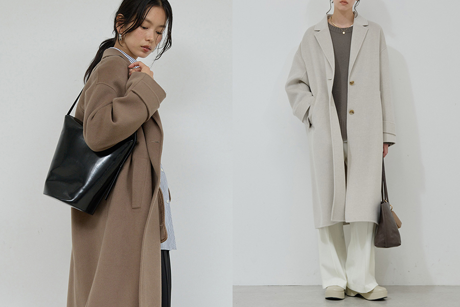 「まずは、上質なウール素材を使用した一生モノのチェスターコートから。美しいシルエットが、洗練された冬のコーディネートを叶えます。アームホールのゆとりもあり、冬のニットを合わせて華やかに」。