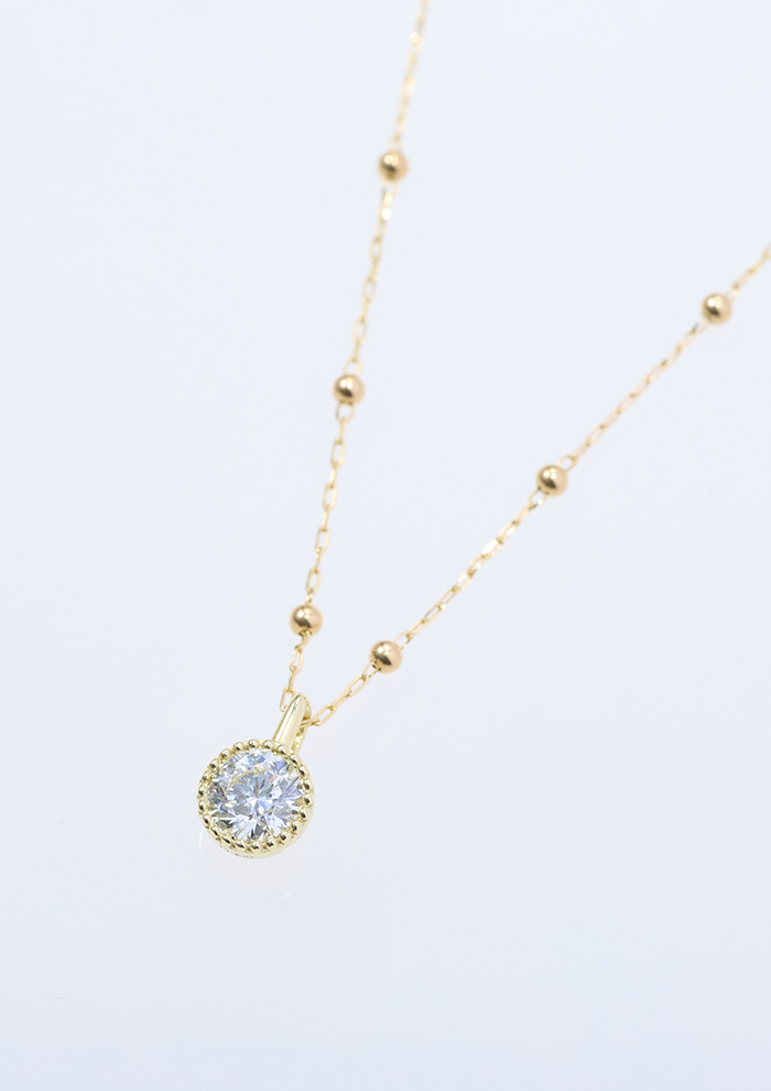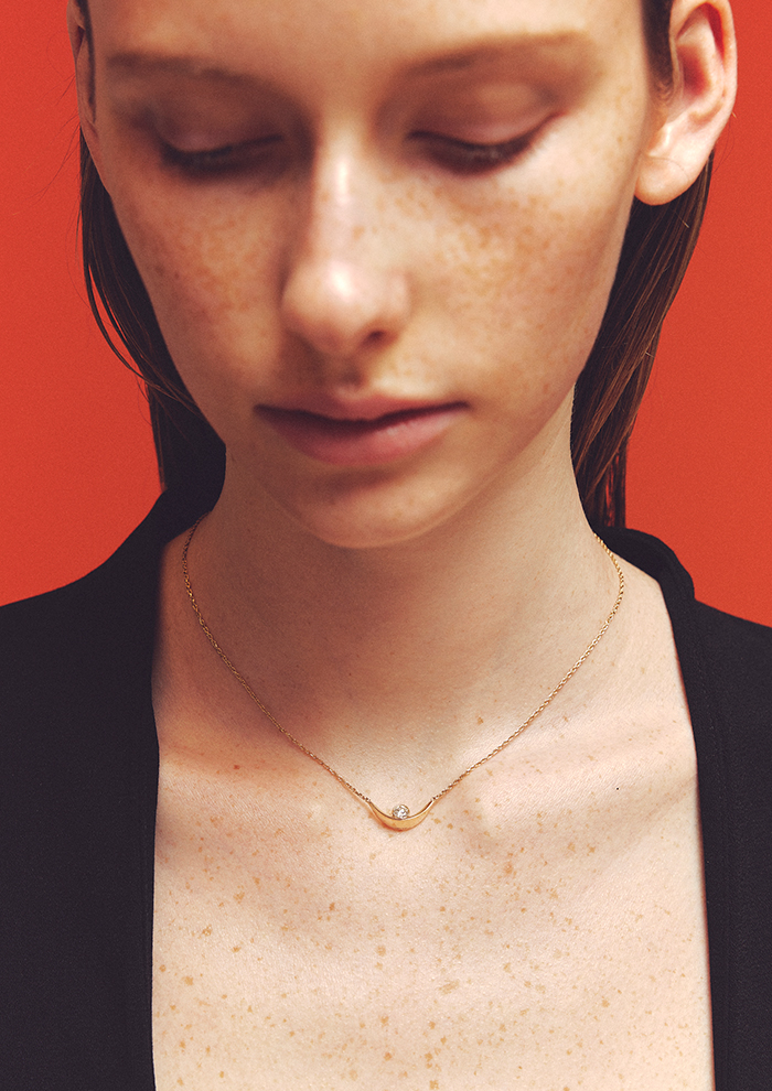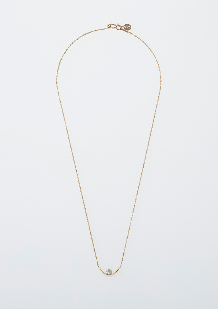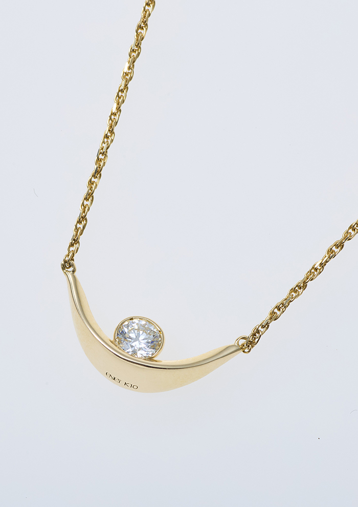 「約0.23ctあるダイヤモンドをエナジーに見立て、大地が包みこむようなイメージでデザインしたネックレス。シンプルなデザインながらも、ボリューム感のあるフォルムがダイヤモンドの存在感を引き立てます。アジャスターでサイズ調整も自由自在」。