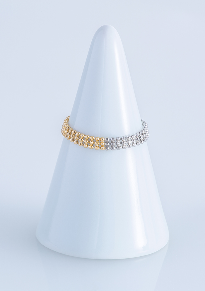 「ここからはこの時期のニットやジャケットコーディネートとも相性抜群な、不動の人気を誇る“ピクセル”“ヘリンボーン”コレクションからピックアップ。いつものジュエリーにプラスワンしても楽しめる万能アイテムばかりです」。